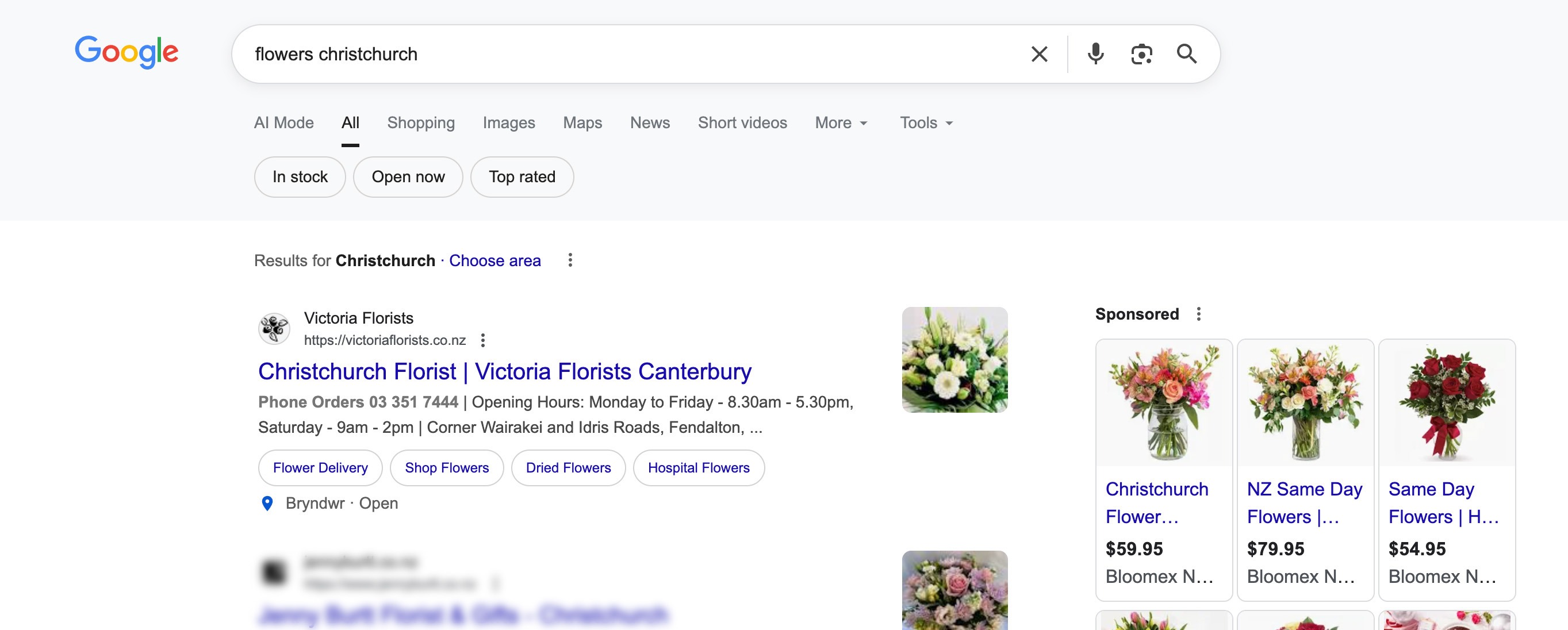 - SEO that consistently puts Victoria Florist as #1 on page one on Google for Christchurch Florists